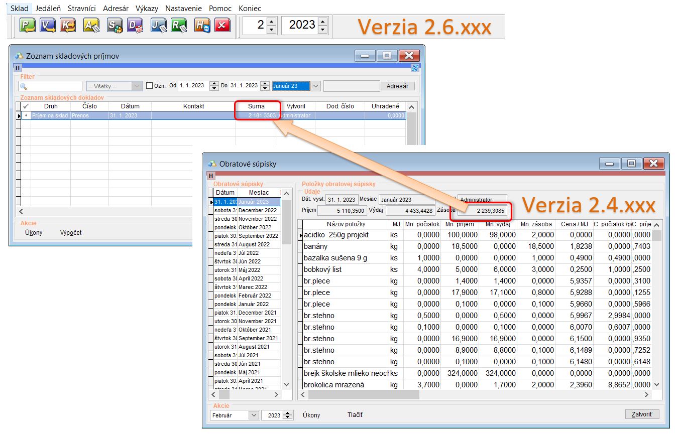 Kontrola prenesenia skladových zostatkov (porovnanie prenesenej príjemky a obratovej súpisky z pôvodnej databázy + upravenie, doplnenie chýbajúcej položky v príjemke a vytvorenie Obratovej súpisky v novej verzii aplikácie)