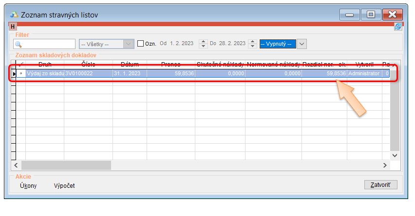 - Stravné listy/výdajky alebo príjemky v mesiaci po vytvorenom výkaze.