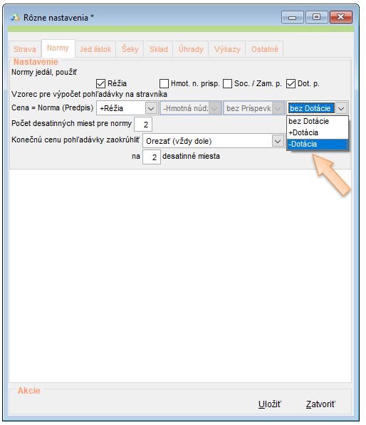 - Nastavte možnosť Odpočítavať príspevok "-Dotácia".