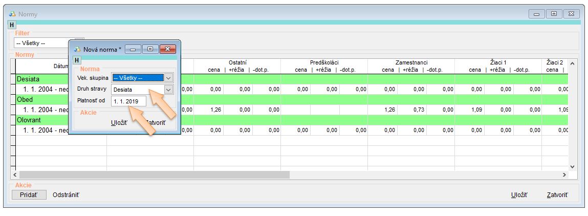 - Normu vytvorte pre všetky druhy stravy. (Desiata, Obed,Olovrant)