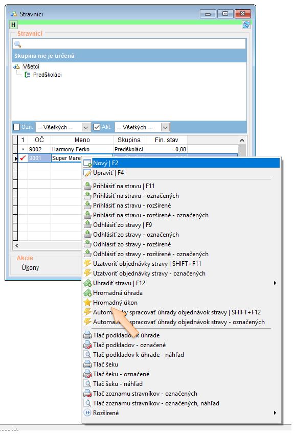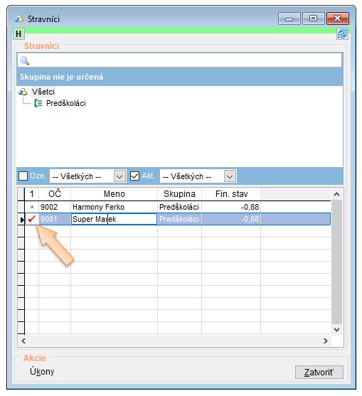 - V otvorenom okne kliknite prvým tlačidlom myši v stĺpci stravník.
