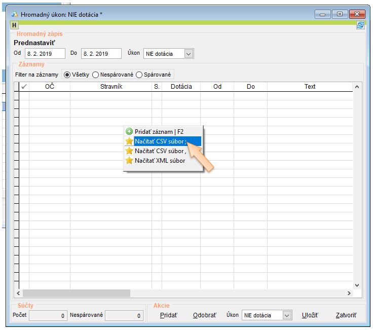 - Pri následnom importe a nastavení NIE dotácia je vybraným stravníkom zrušený nárok na dotáciu.