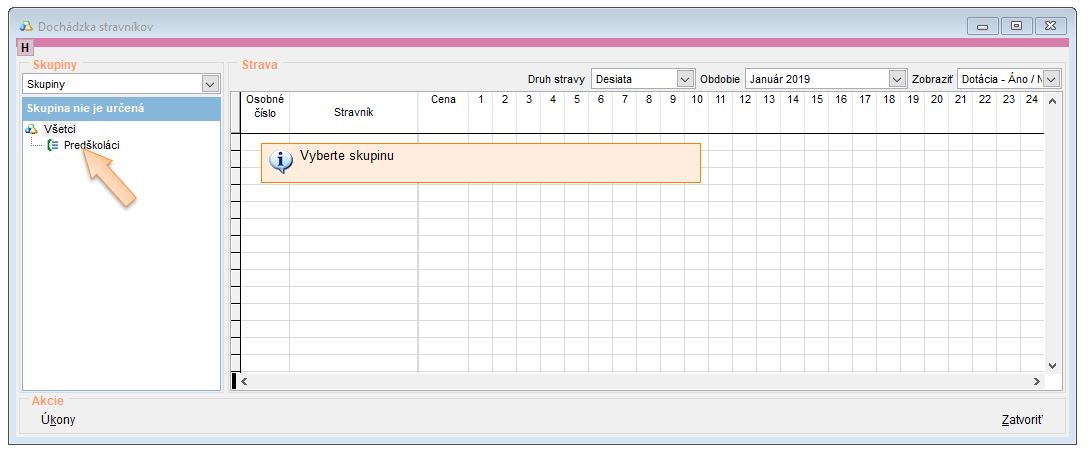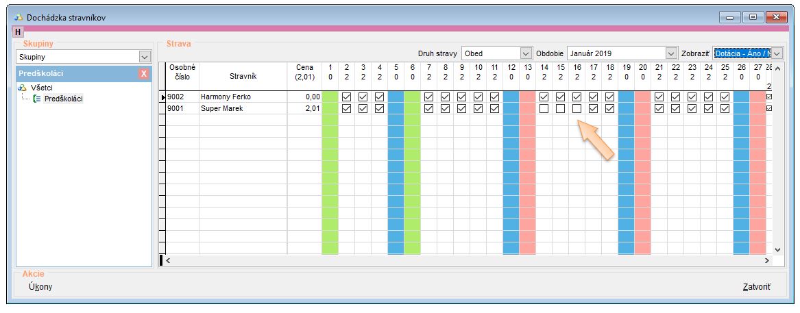 • Otvorte si dochádzku stravníkov. (Tlačidlo D na nástrojovej lište.)