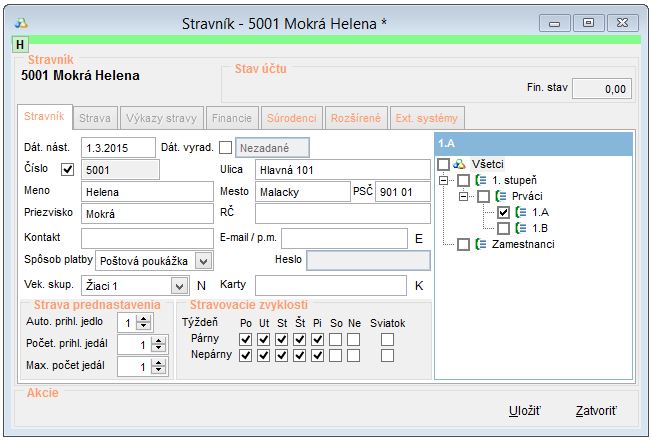 - V okne Stravník vyplňte všetky informácie o danom stravníkovi.