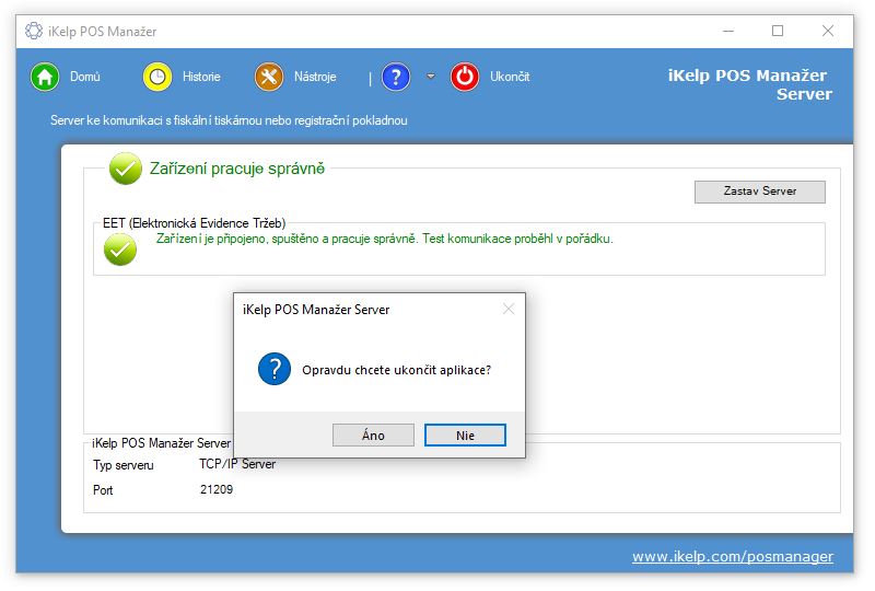 - Pokud test proběhl úspěšně, odinstalijte aplikaci POS Manažer z původního PC.