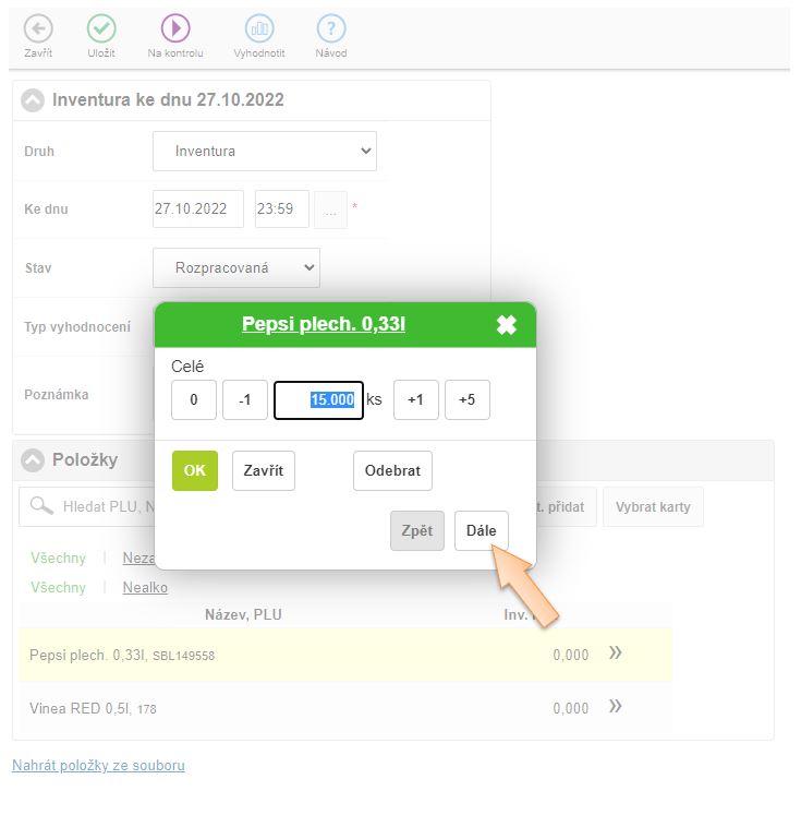 - Uložit - uložit inventuru pro pozdější zpracování.