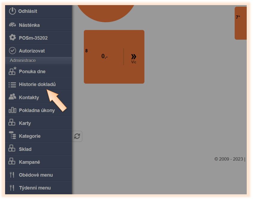 - Klikněte v menu aplikace na Historie dokladů.