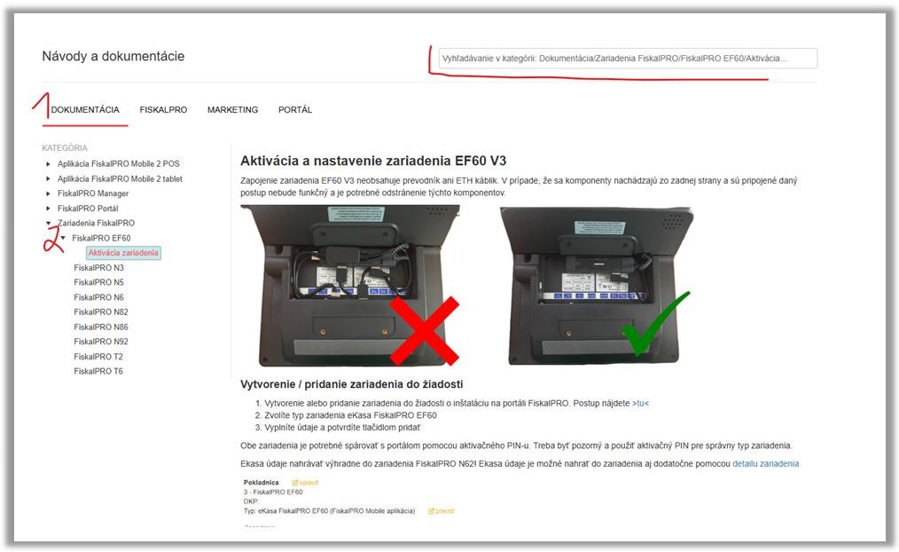 - Aplikácia sa inštaluje na zariadenie (tablet) EF60 nie na samotný terminál.