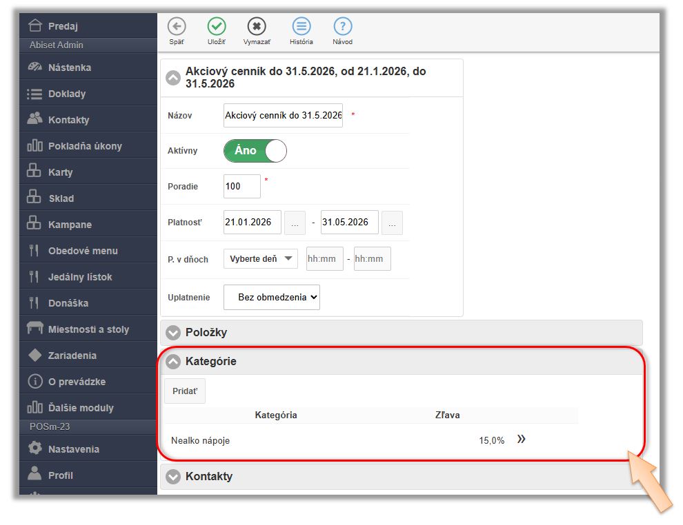 - Kontakt - výber kontaktu, pre ktorý je cenník definovaný.