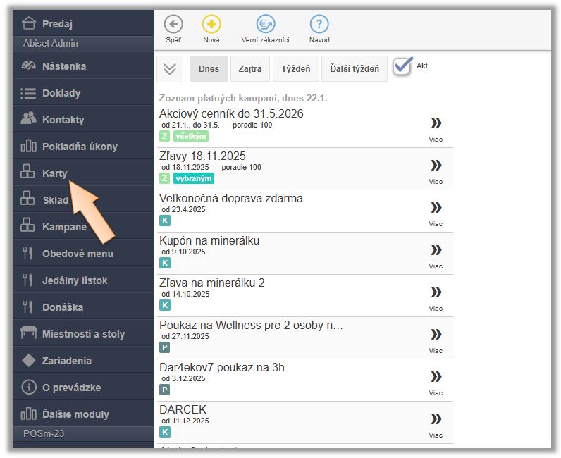 - Export - možnosť exportu zoznamu kariet do súboru *.CSV.