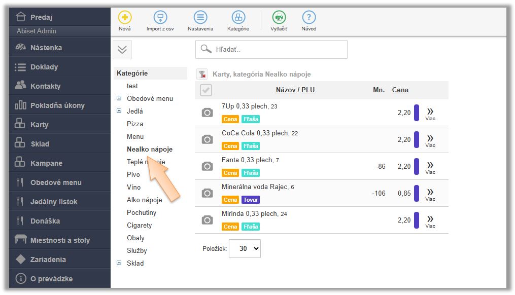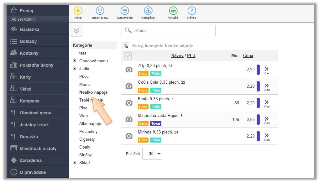 - Na predajnej karte, napr. Fanta 0,33 plech kliknite na tlačidlo Viac a Upraviť. Prejdite na záložku Prídavky - väzby.