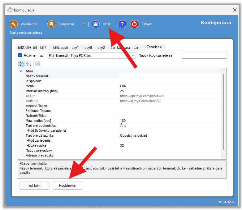 Spojenie s TEYA POSlink sa nastavuje priamo v aplikácii, je potrebné vybrať konkrétnu prevádzku a zariadenie zákazníka.