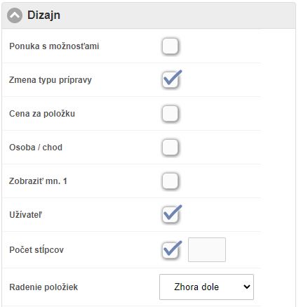 - Osoba / chod - rozdeľovať položky podľa osôb / chodov.