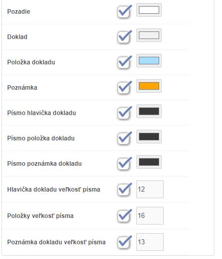 - Písmo položka dokladu - farba písma položky dokladu.