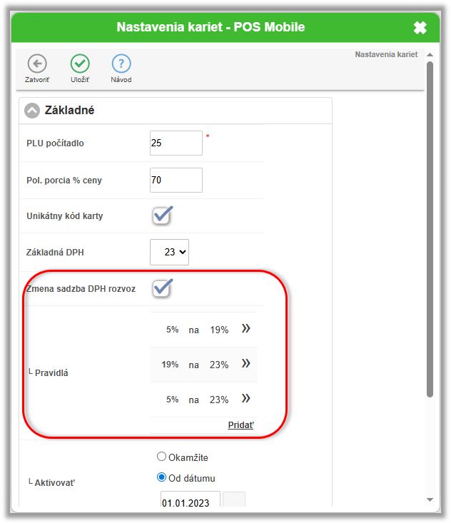 1. Základné nastavenia pre aplikovanie zmien DPH