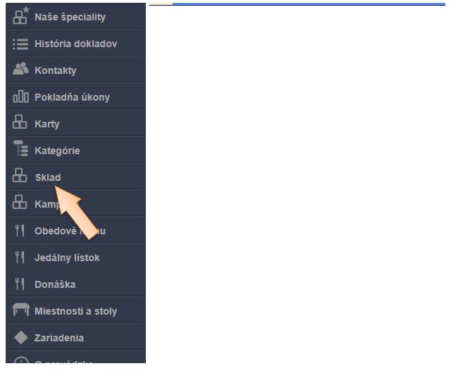 - Kliknite na možnosť Sklad v menu aplikácie.