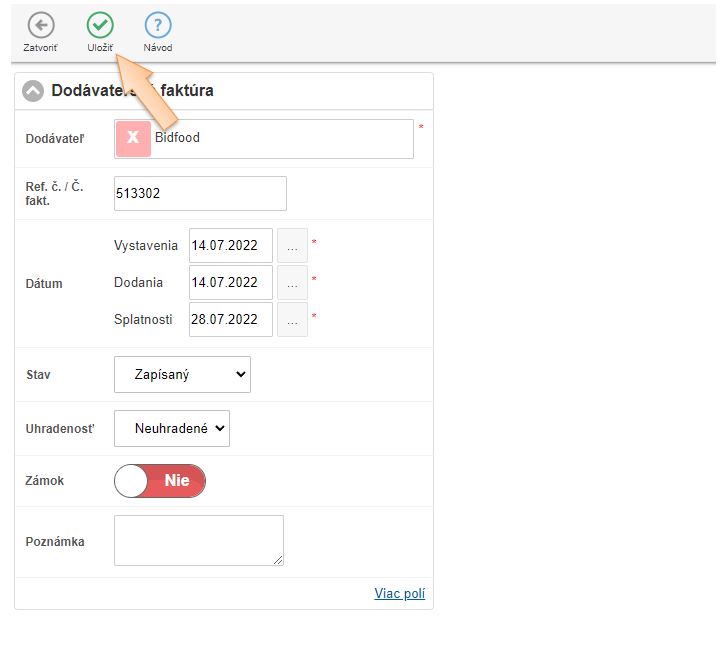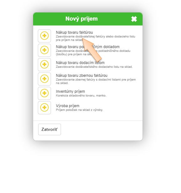- Kliknutím na + Príjemka vytvoríte nový príjem.