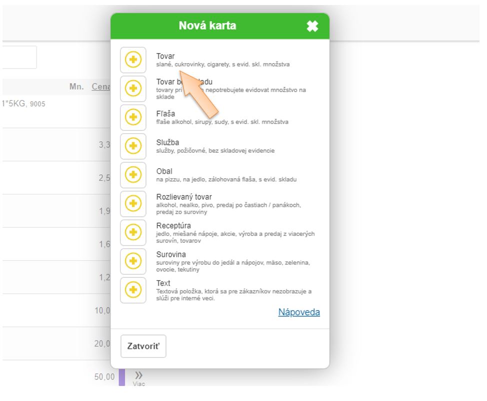 - Vyberte príslušný typ karty Tovar alebo Fľasa.