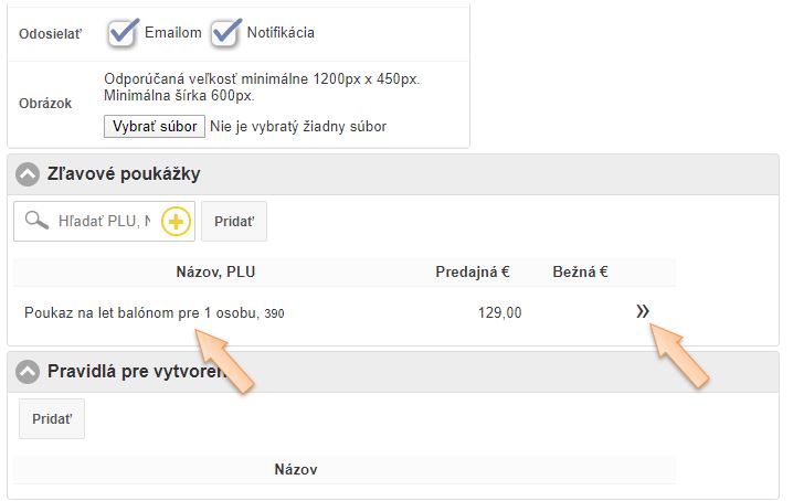 5. V časti Zľavové poukážky pridajte / vytvorte kartu pre poukážku, ktorá sa bude predávať.