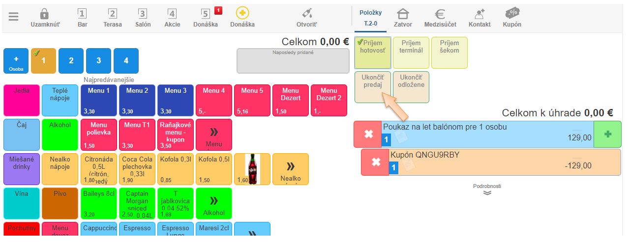 1. V predaji vyberte kartu - poukaz , ktorý sí zákazník kupuje.