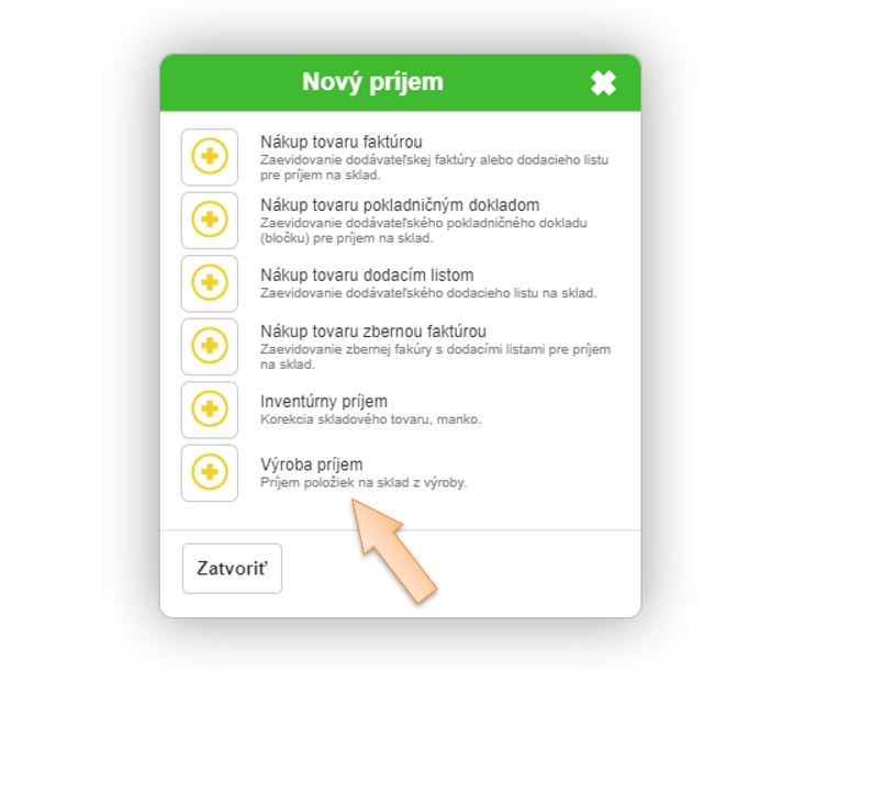 2. Kliknutím na + Príjem vytvoríte skladový výdaj.
