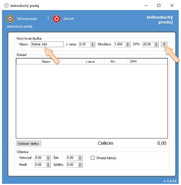 6. Nastavte správne DPH a kliknite na tlačidlo P.