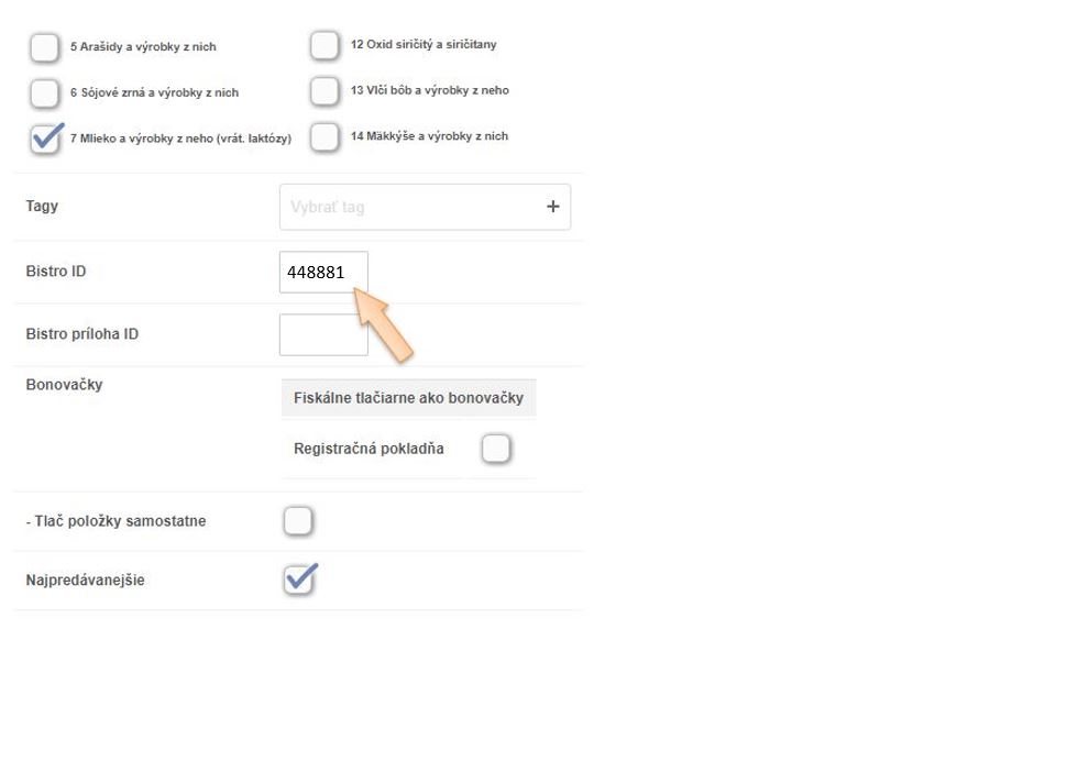 2. Kedy je treba vyplniť Bistro ID a kedy Bistro priloha ID