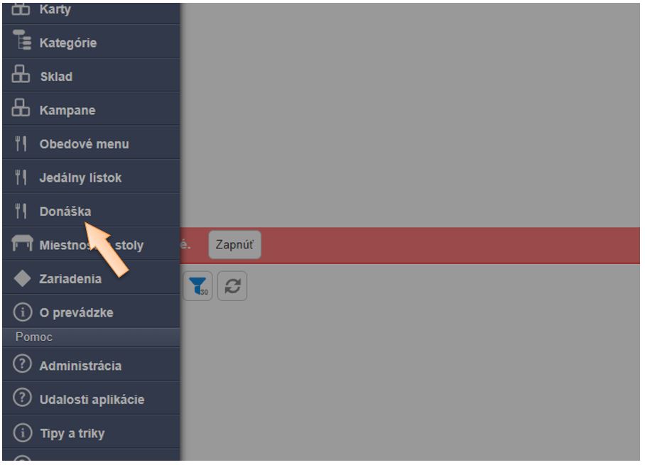 - V menu aplikácie v časti Donáška kliknite na Ext. systémy.