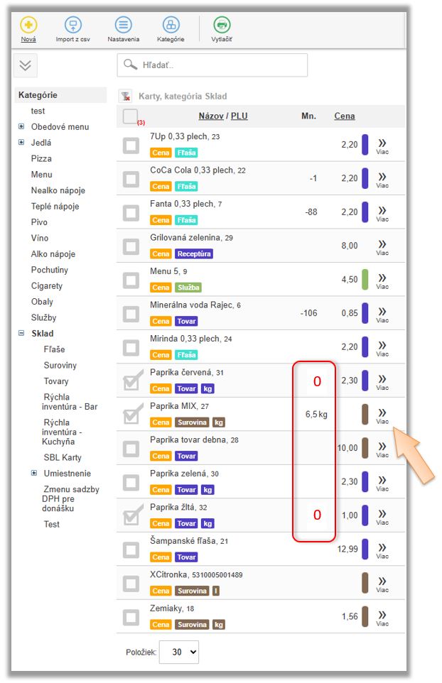 Tento scenár evidencie si opíšeme na konkrétnom príklade papriky. Dodávateľ na doklade účtuje papriku ako rôzne položky podľa farby, napr. paprika červená, zelená, žltá. V skladovej evidencii však má byť tento tovar vedený ako jedna položka. Nie je potrebné evidovať podľa farieb, jednak kvôli rýchlejšiemu odevidovaniu pri inventúre. Nie je to potrebné rozlišovať ani v prípade vstupujúcej suroviny do ďalších receptúr. Evidencia je v rovnakých merných jednotkách, ako je aj následne tovar evidovaný na sklade.