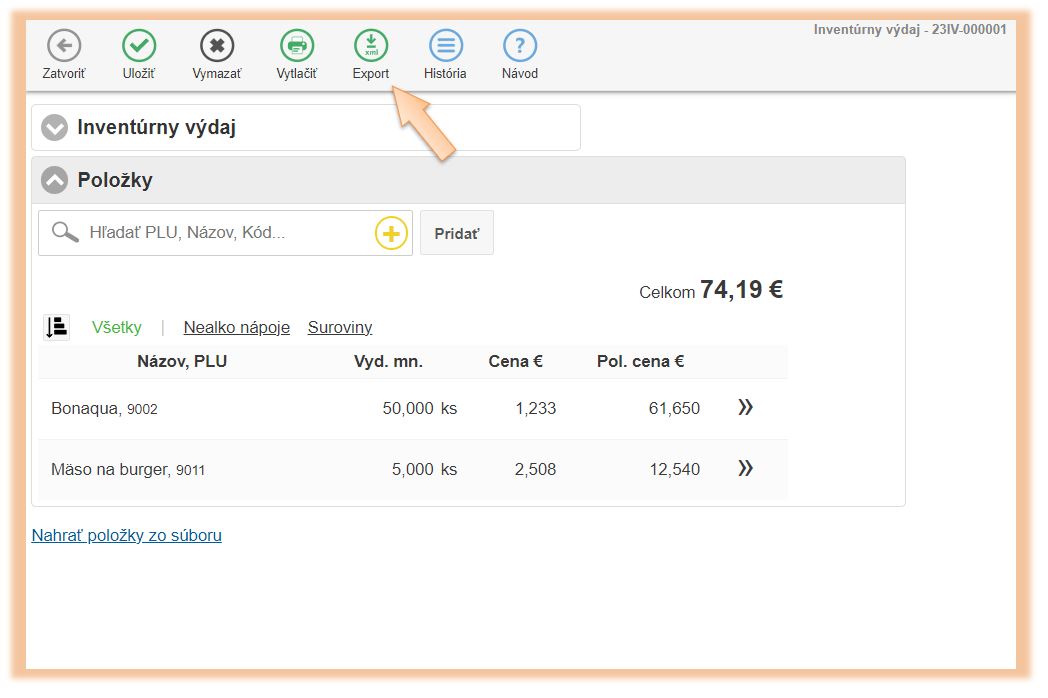 • Export je možné vykonať až keď je skladový výdaj uložený.