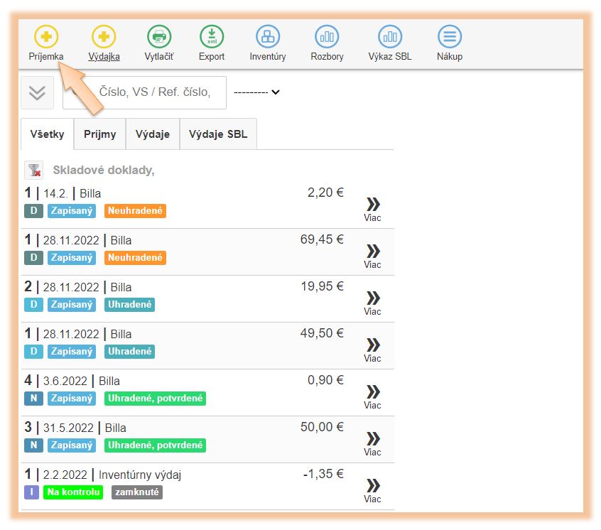 1. Kliknite v menu aplikácie na Sklad.