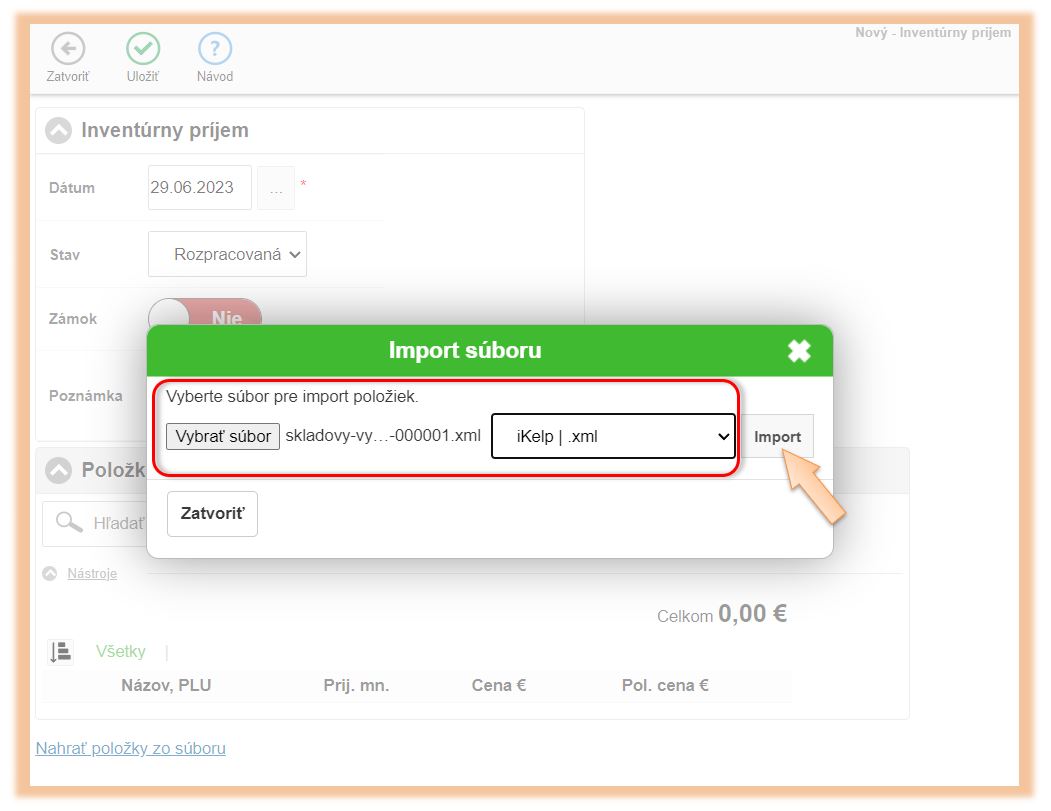 4. Vyberte formát súboru iKelp| .xml a kliknite na Import.